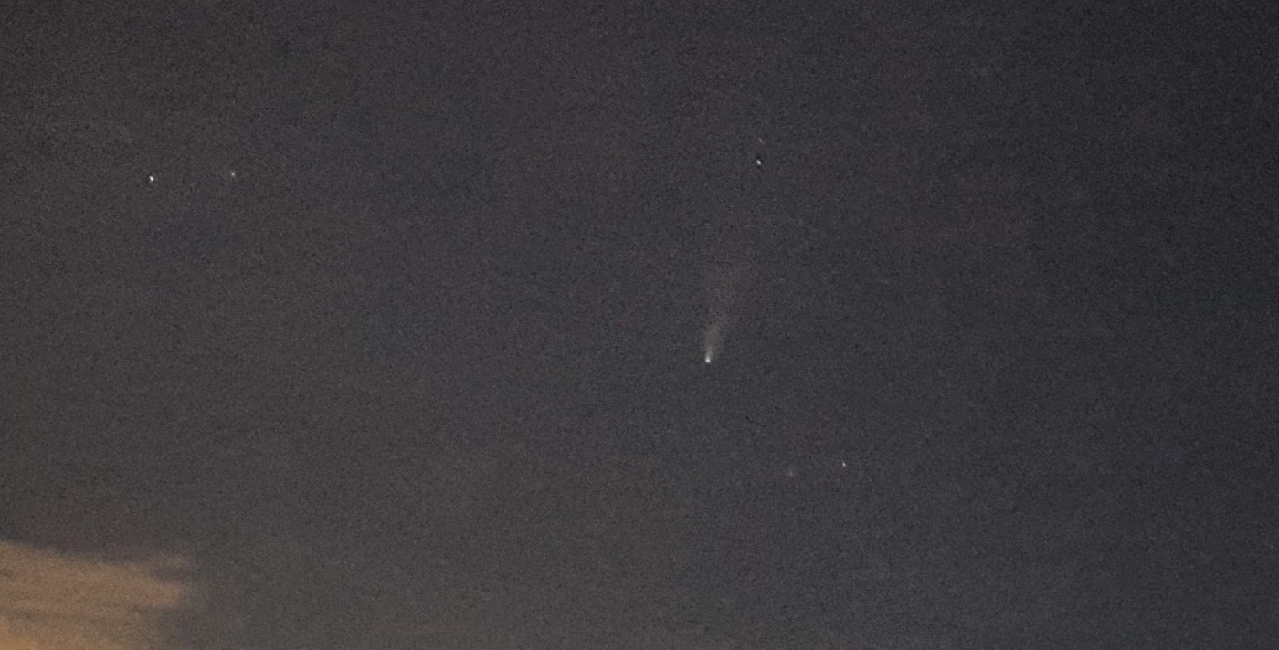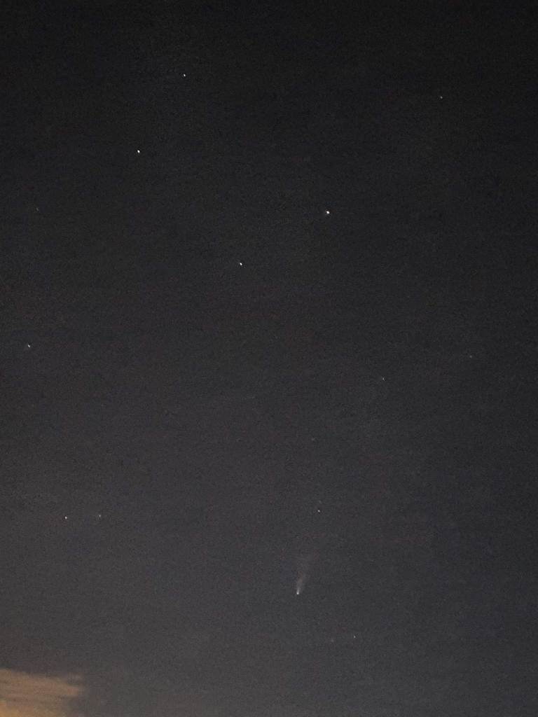 La foto qui sotto è scattata dal mio smartphone e quindi mostra come si vedeva ad occhio nudo la cometa… immagina quanto sia ancora più bella con un semplice binocolo!